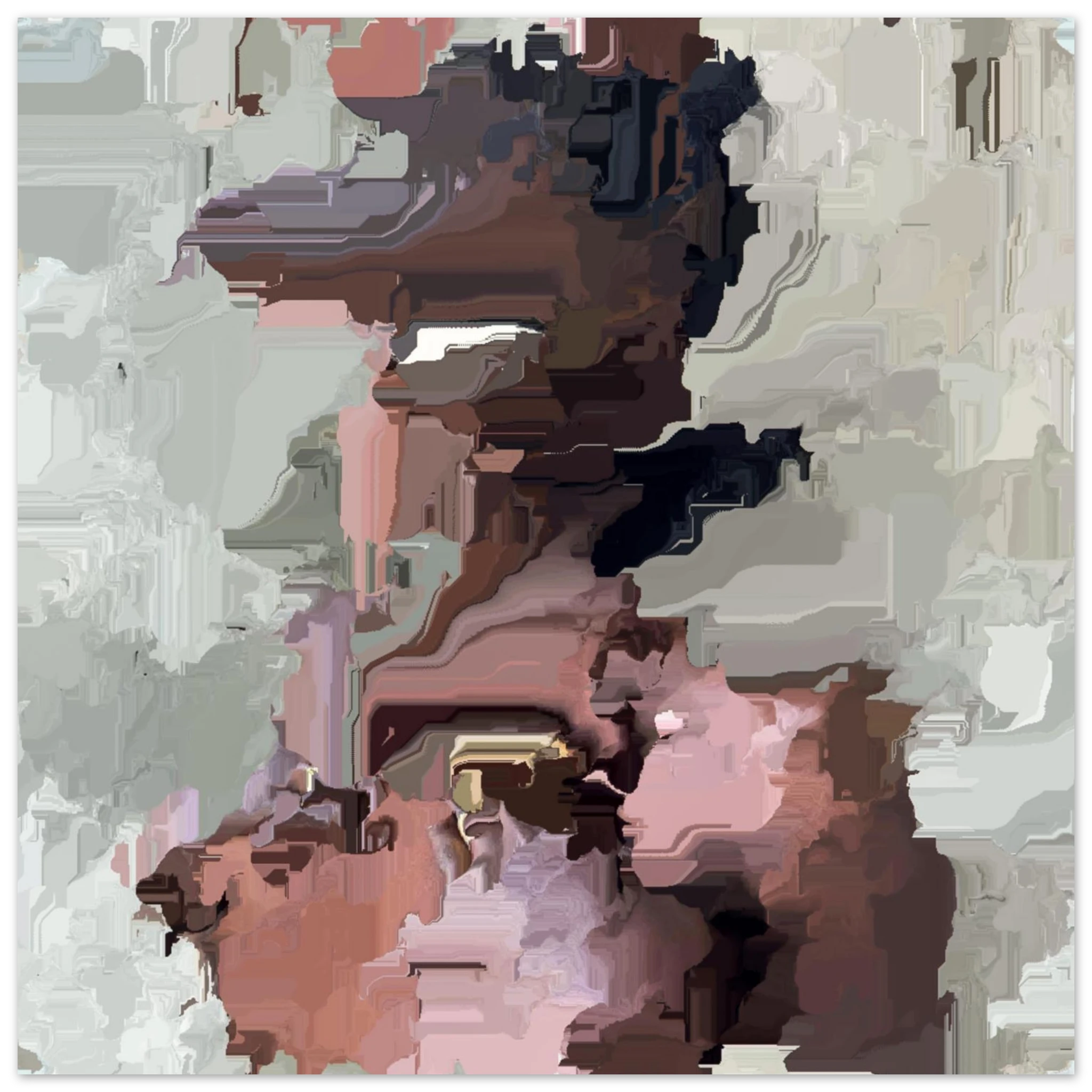 A tangible fragment of the Datamoshpit. Each print is one-of-one instance, reflecting a fleeting digital moment in sculptural form.