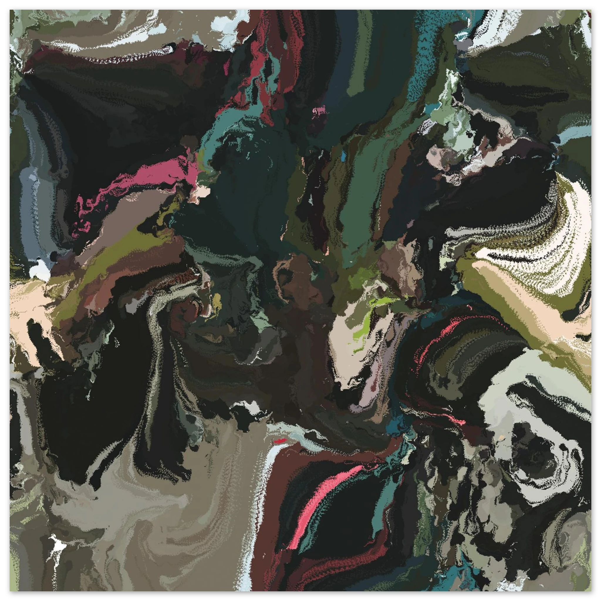 A tangible fragment of the Datamoshpit. Each print is one-of-one instance, reflecting a fleeting digital moment in sculptural form.